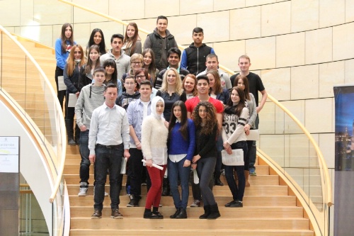 Die Klasse 10b der Wilhelm-Busch-Hauptschule war im Rahmen des Geschichte/ Politik Unterrichts zu Besuch im Düsseldorfer Landtag. Nach einer Einführung in die Arbeitsweise des Landtags und einem kurzen Vortrag über die Geschichte des Gebäudes konnten die Schülerinnen und Schüler im Plenarsaal des Landtags erleben, wie es in einer Debatte zugeht.